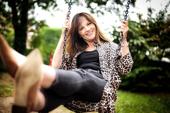 Ex-Bundesaußenministerin Annalena Baerbock in Leverkusen - darf ich mal - aus ein paar Luftsprüngen auf dem Trampolin wird ein Salto samt anschließender Schraube.